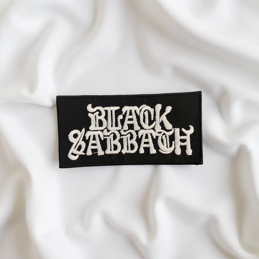 Design: Rectangular patch with gothic-style “BLACK SABBATH” text in bold embroidery.