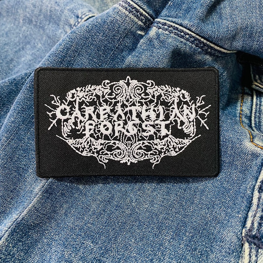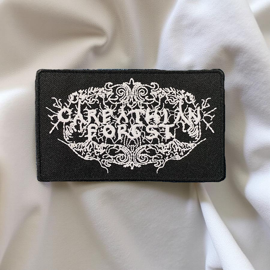 Design: Intricate gothic-style Carpathian Forest logo with black metal aesthetic