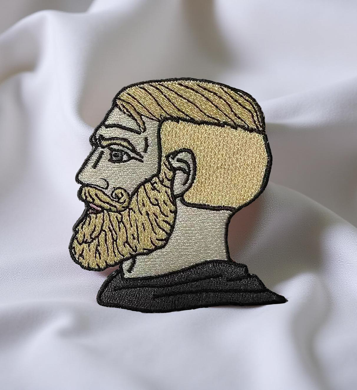 Chad Meme Embroidered Patch – Funny Iron-On Badge for Jackets & Backpacks (8.5 x 9 cm)