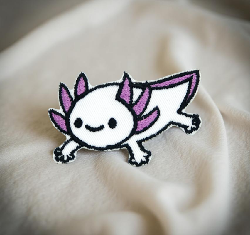 Cute Axolotl Embroidered Patch – Kawaii Pink Animal Iron-On Badge (6.6 x 4.1 cm)