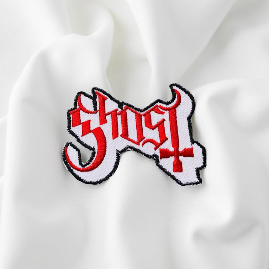 Ghost Band Logo Patch with Inverted Cross – Iron-On