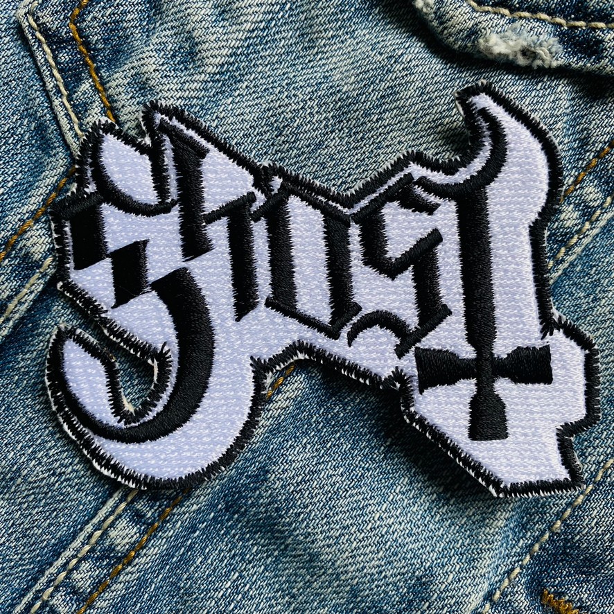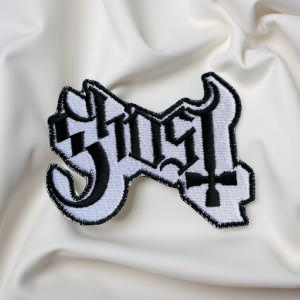 Design: Ghost band logo with an inverted cross in a striking monochrome layout