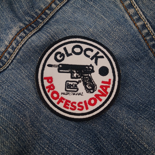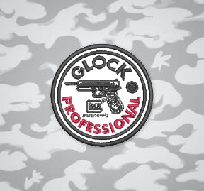 • Design: Circular patch featuring a Glock pistol illustration with the words “GLOCK PROFESSIONAL” in a bold, split-color design