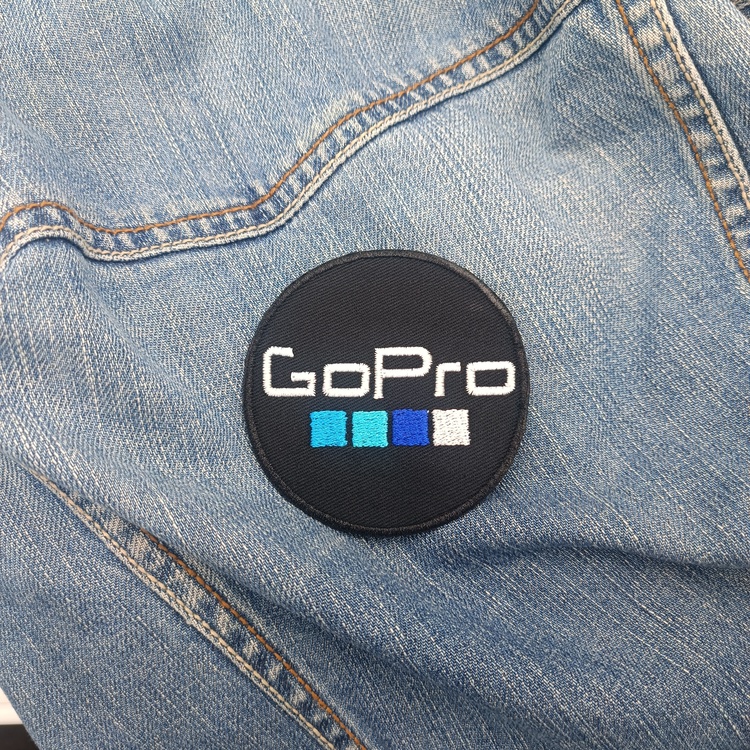 • Design: Round patch with the GoPro logo and four colored blocks below the text