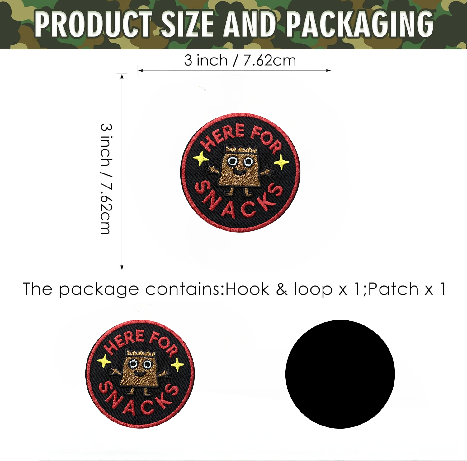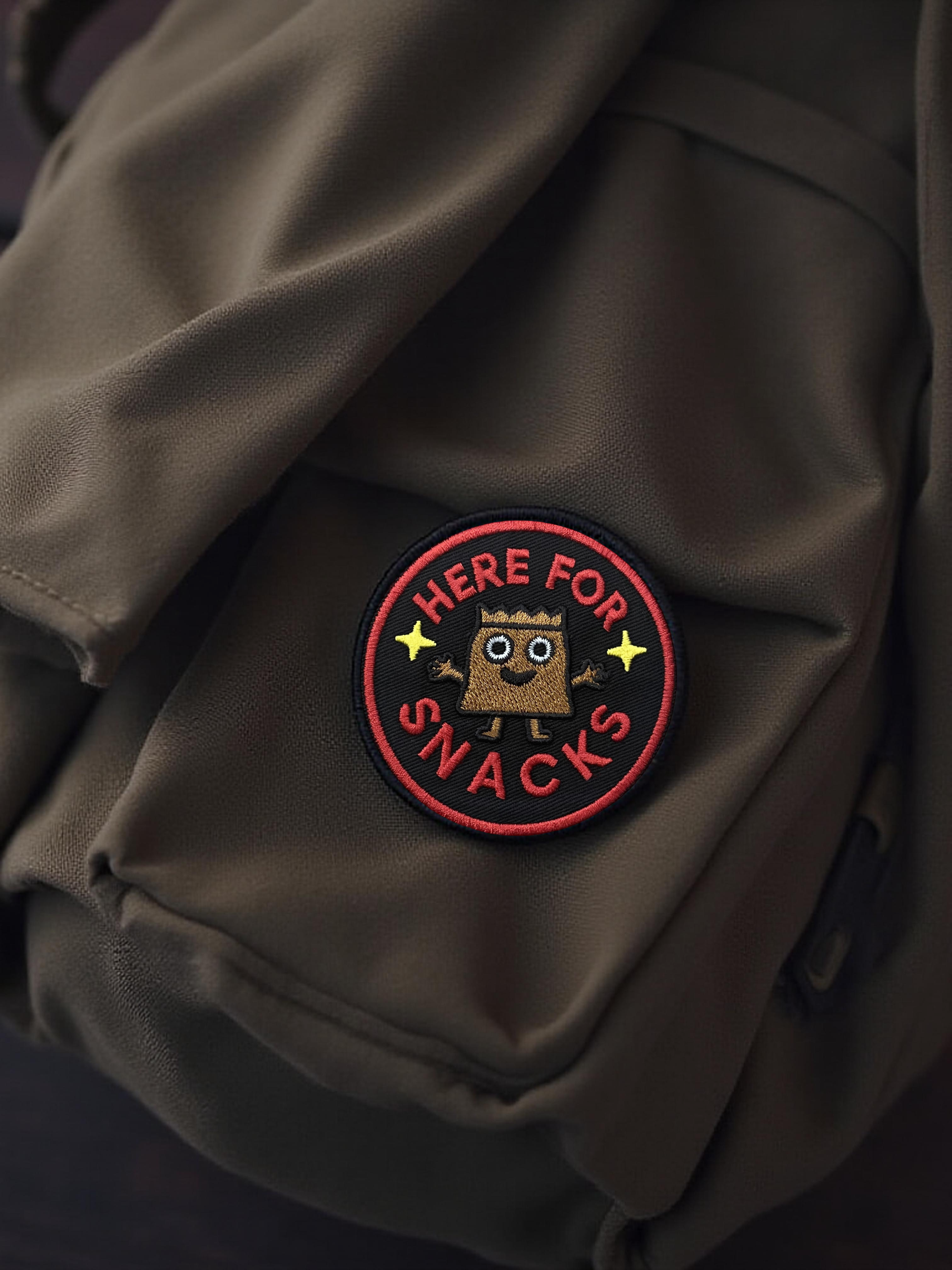 Here for Snacks Patch – 3″ Embroidered Hook & Loop Morale Patch
