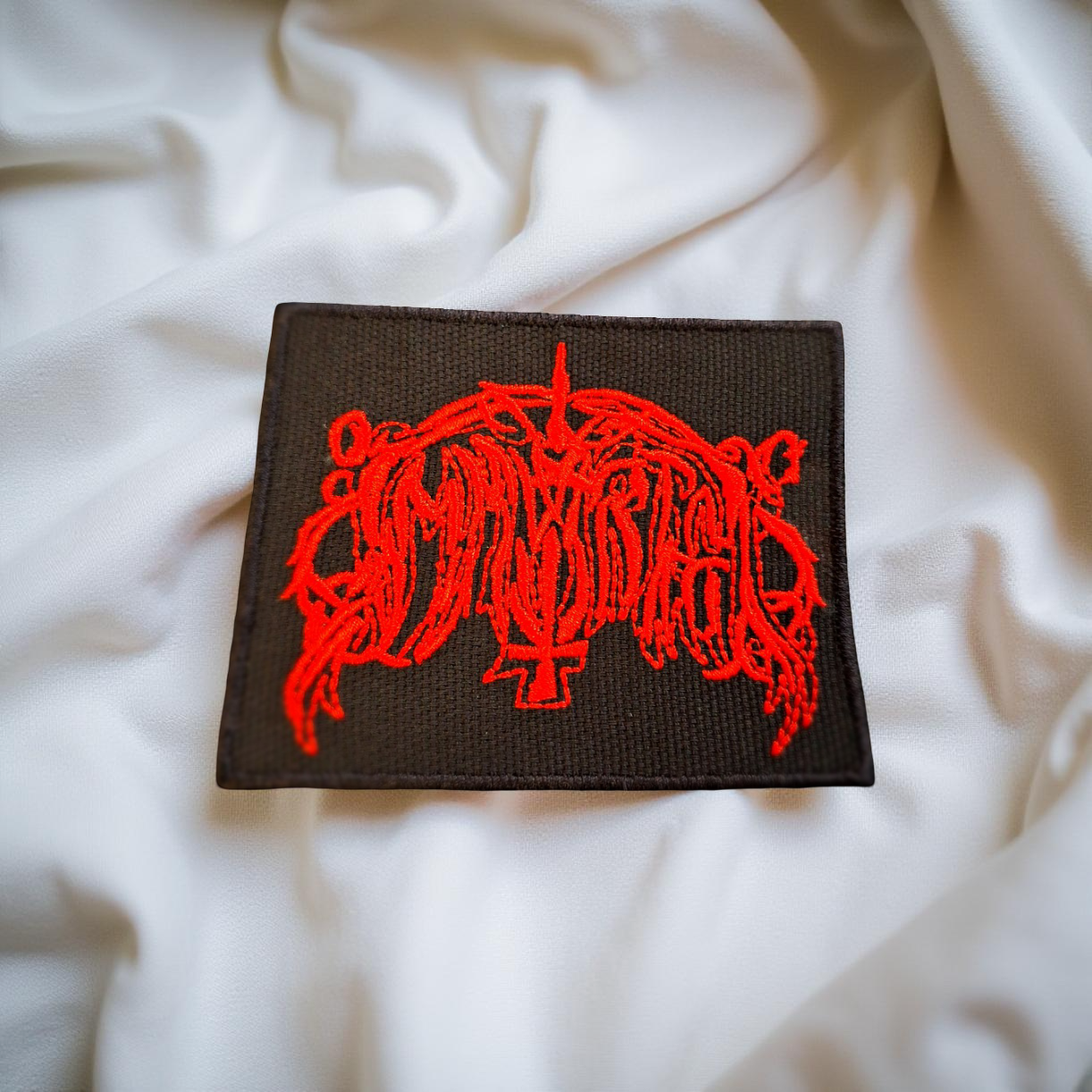 Design: Intricate and chaotic Immortal band logo with inverted cross detail