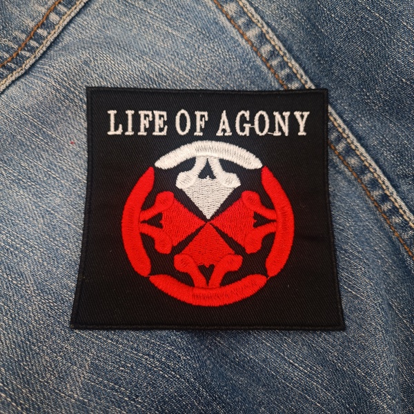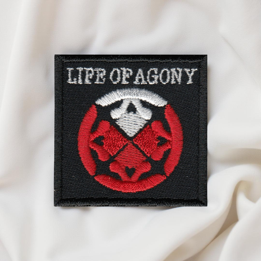 This patch features the bold Life of Agony band name above the iconic broken-circle skull emblem in vivid red, black, and white stitching. A must-have for fans of NY hardcore and alternative metal, this design captures both raw emotion and classic band symbolism.