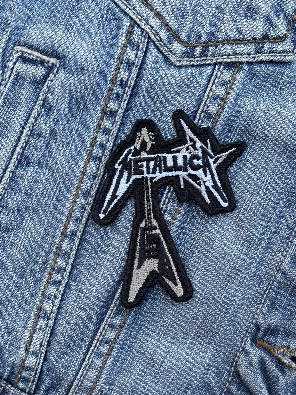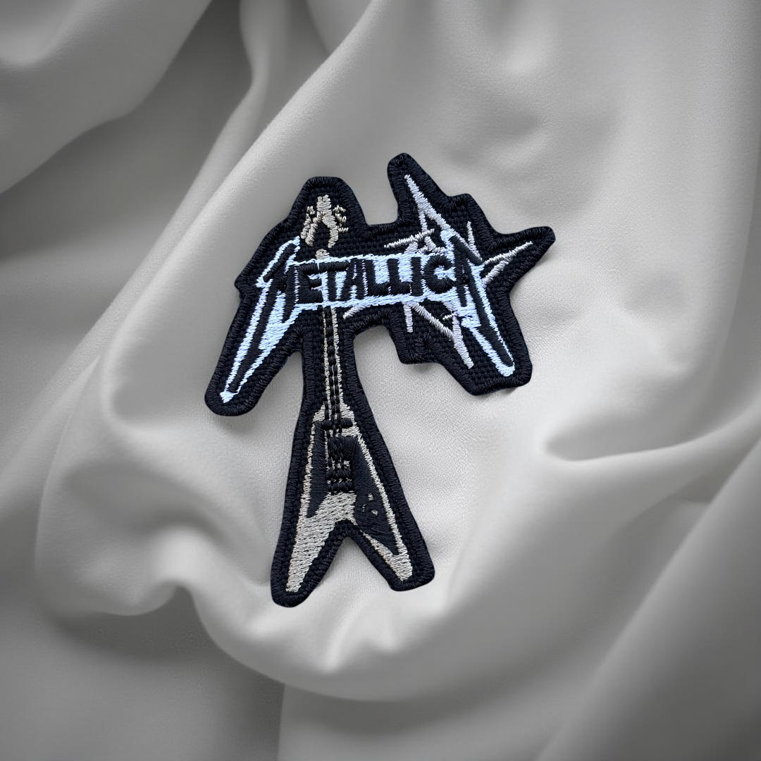 Design: Metallica logo over a spiked starburst with a Flying V electric guitar