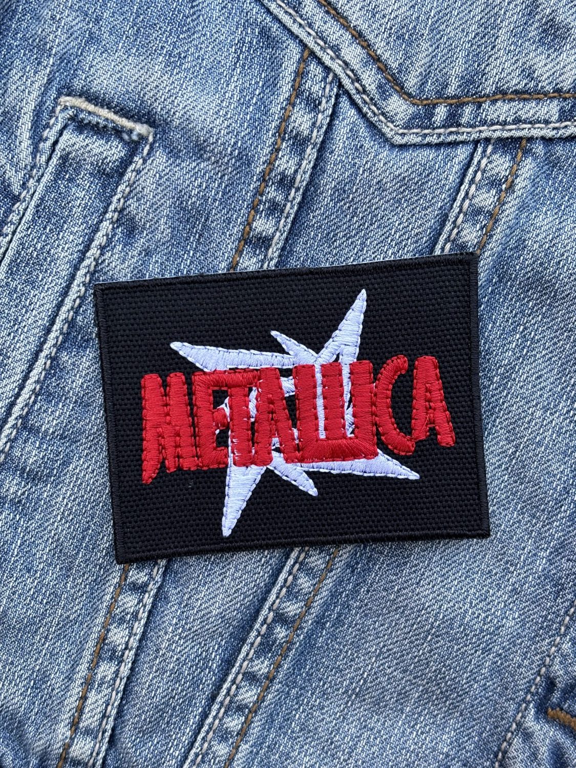 Design: Classic red “Metallica” text layered over a white angular starburst.