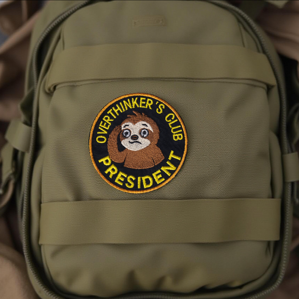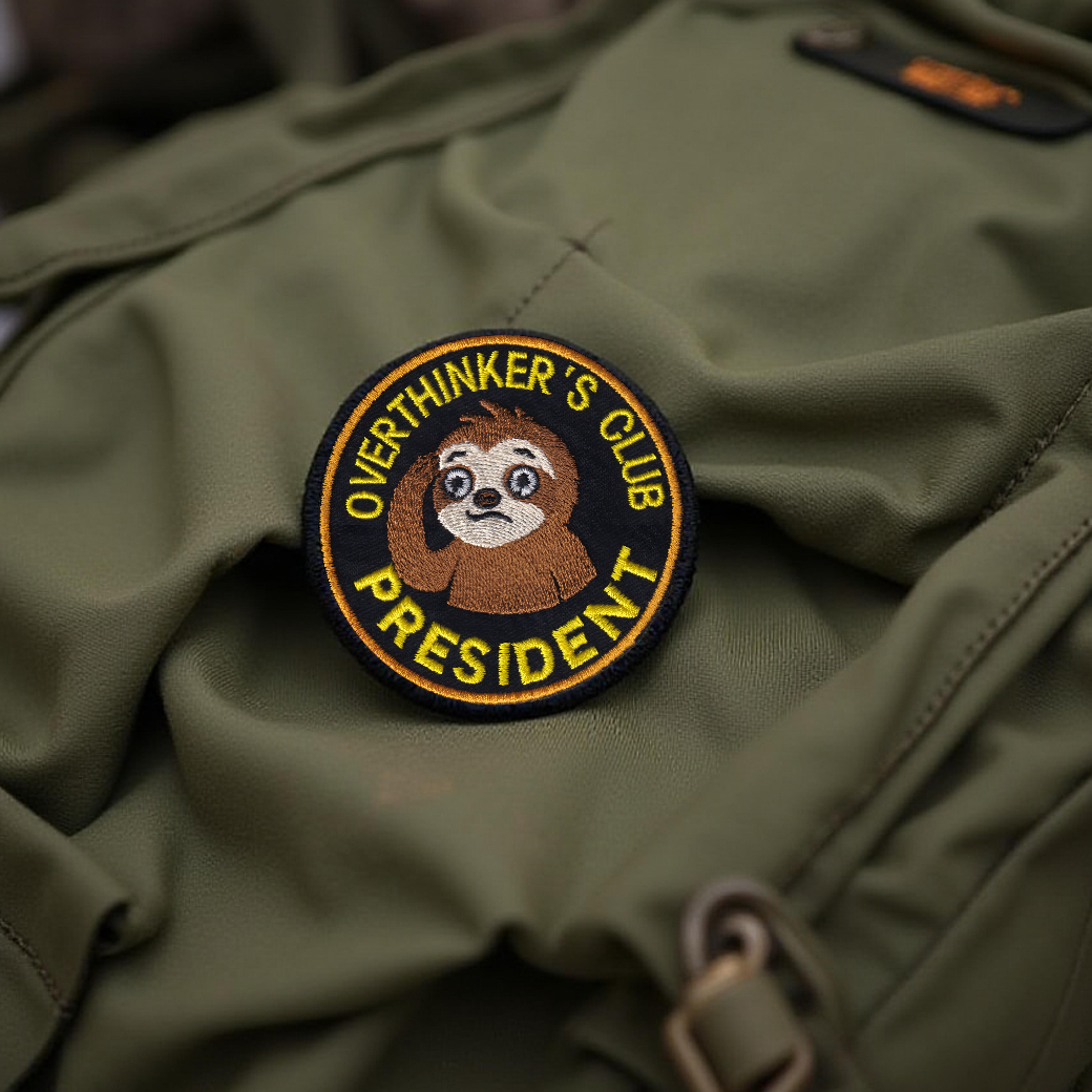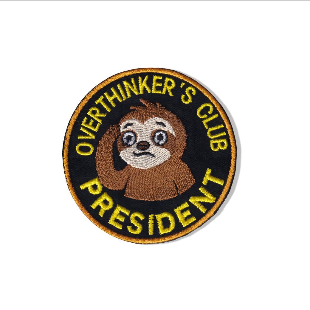 -30%If your brain never clocks out, this “Overthinkers Club President” embroidered patch was made for you. Featuring a wide-eyed sloth deep in thought, this design humorously captures the nonstop mental spirals, second-guessing, and late-night what-ifs we all know too well.