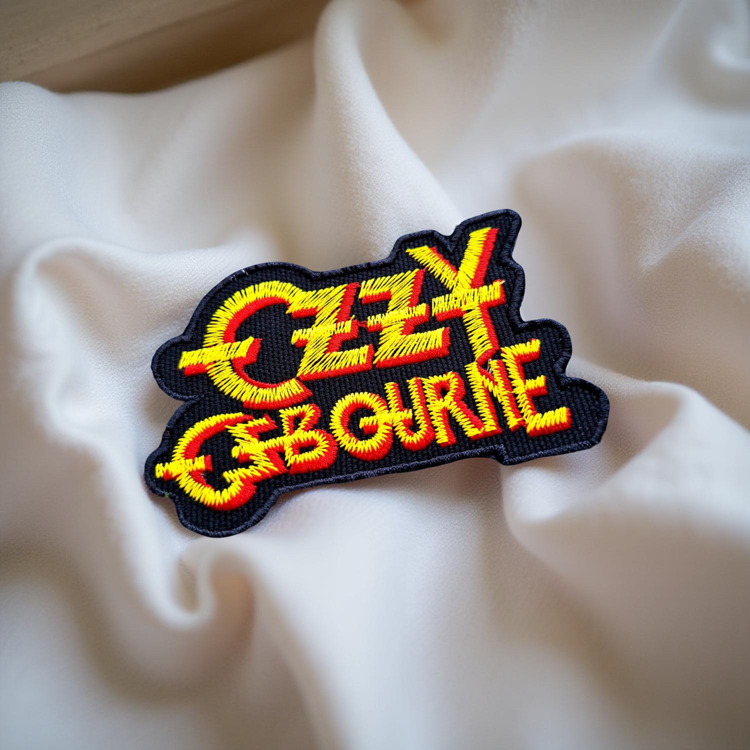 Design: Embroidered Ozzy Osbourne logo in a dynamic font