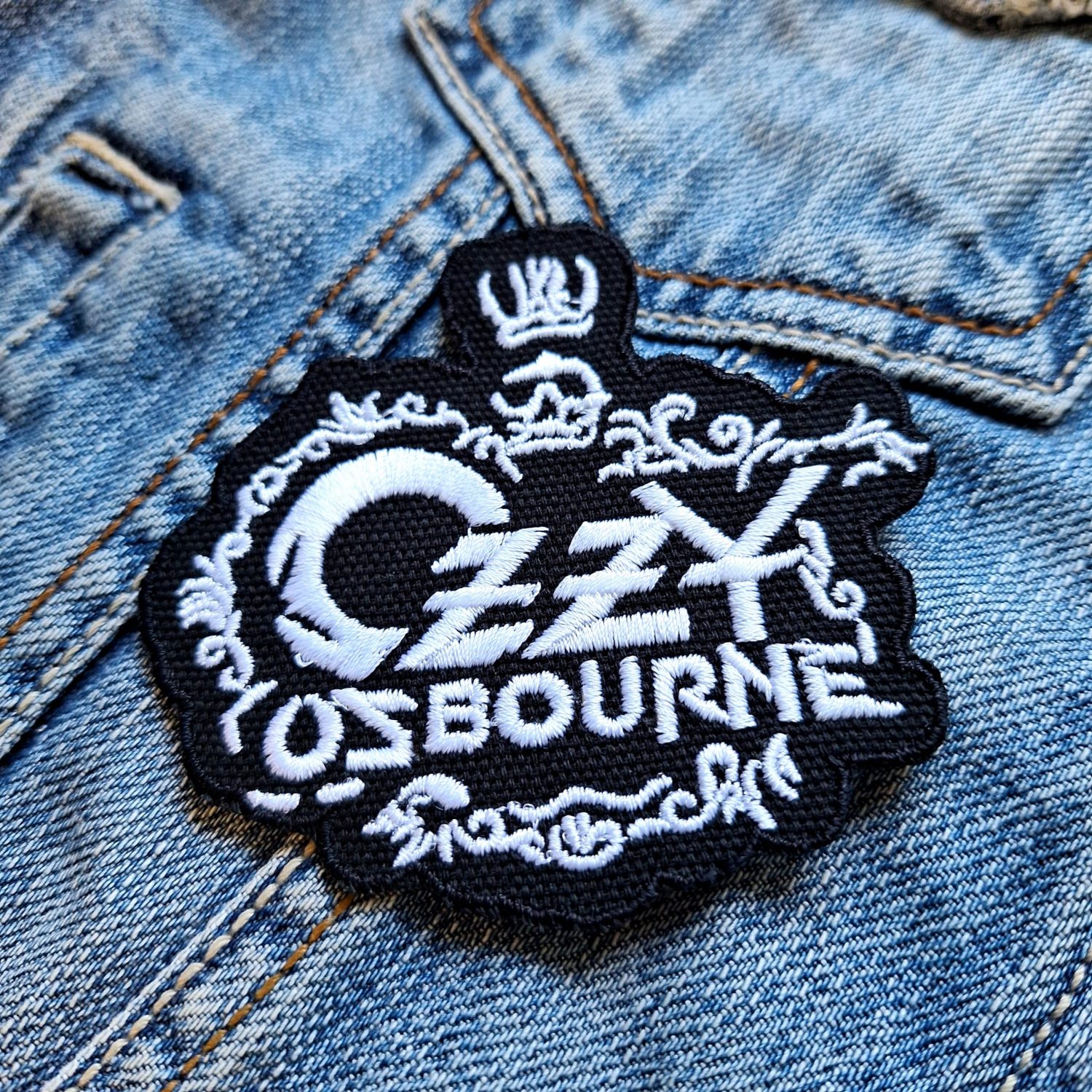 Show off your allegiance to the Prince of Darkness with this unique Ozzy Osbourne patch featuring an ornate white logo design. Intricately embroidered with decorative elements and a crown-like top, it brings classic metal flair to your gear.