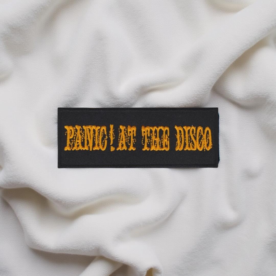 Design: Vibrant orange “Panic! At The Disco” gothic-style font on a black background.