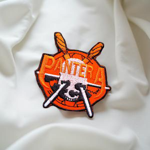 Design: Custom-cut patch featuring a skull with crossed daggers and Pantera text overlay