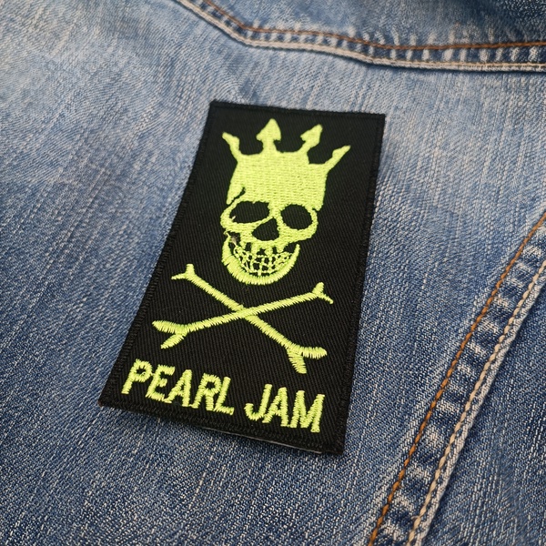 Channel your inner rebel with this bold Pearl Jam patch featuring a skull with a jagged crown and crossbones. A true homage to grunge rock and the band’s raw power, it’s the perfect statement for fans of alternative music and iconic symbolism.