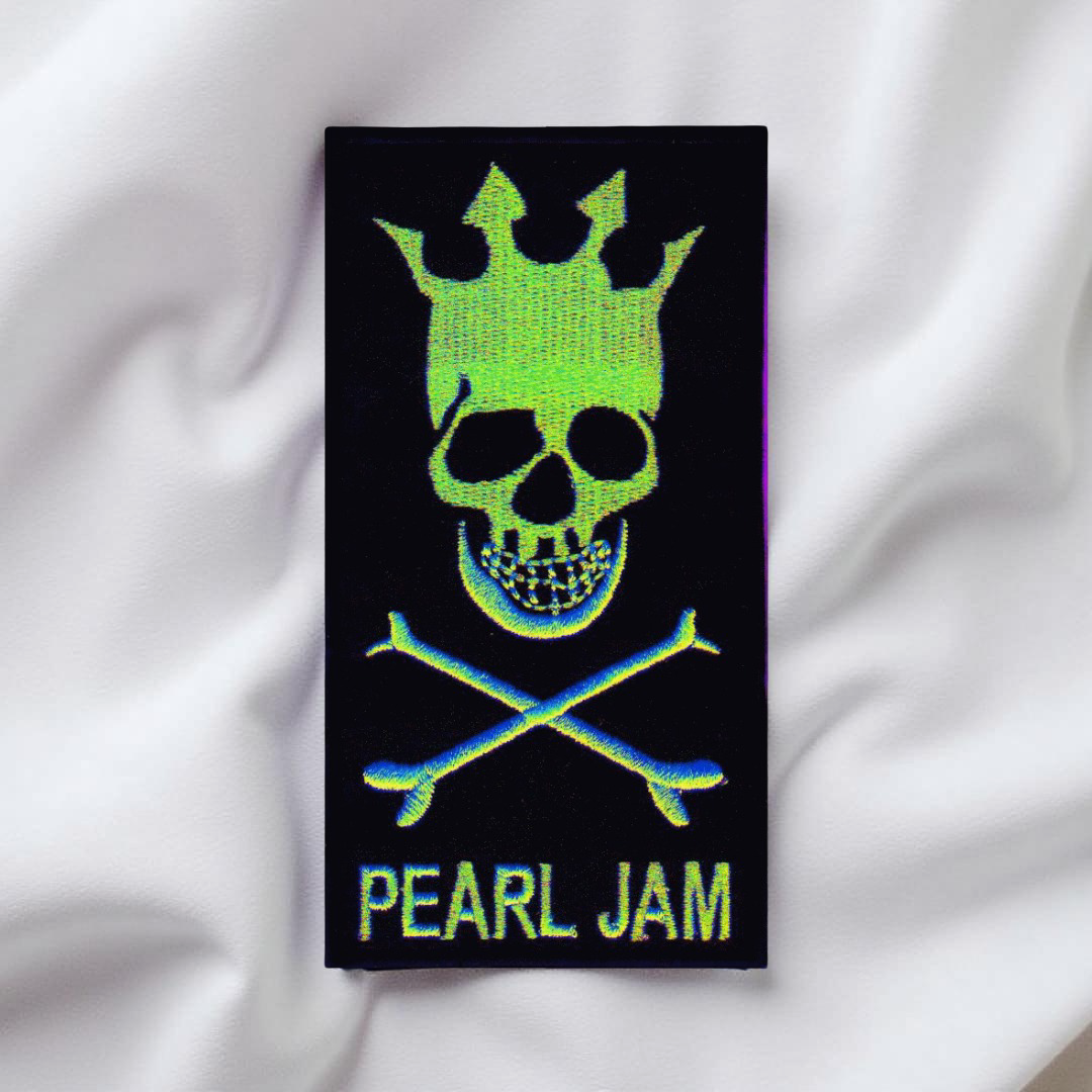 • Design: Skull with a three-point crown and crossbones, with “PEARL JAM” text below.