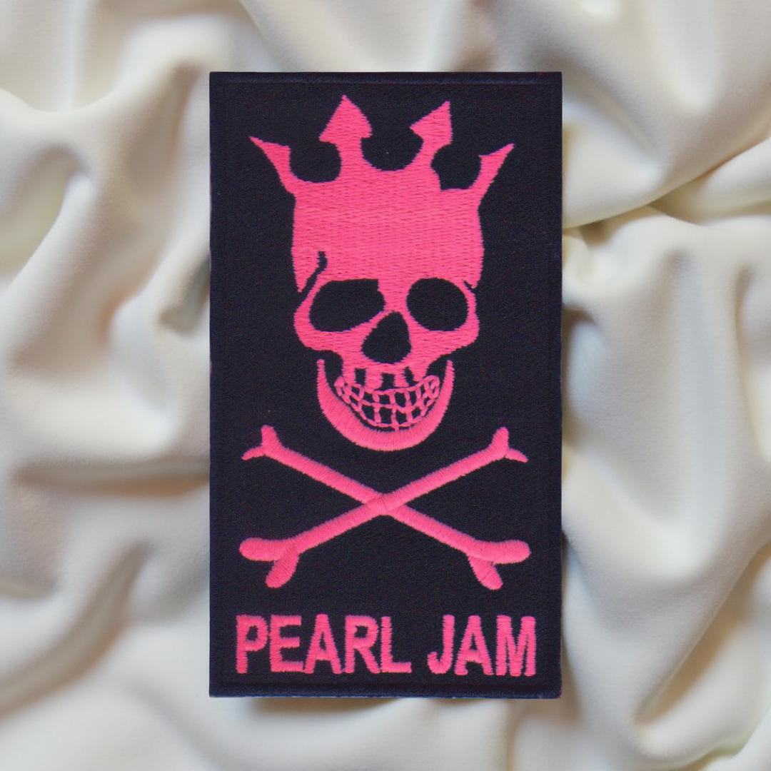 Stand out with this fierce pink Pearl Jam patch! Featuring a crowned skull and crossbones, this design is a nod to the band’s rebellious spirit, perfect for expressing your love for grunge with a splash of attitude and color.