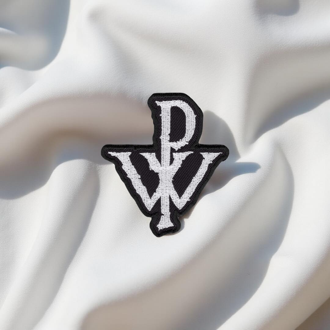 Design: Stylized Powerwolf “PW” monogram in jagged gothic lettering