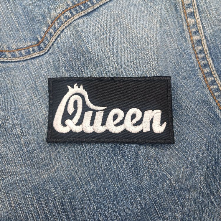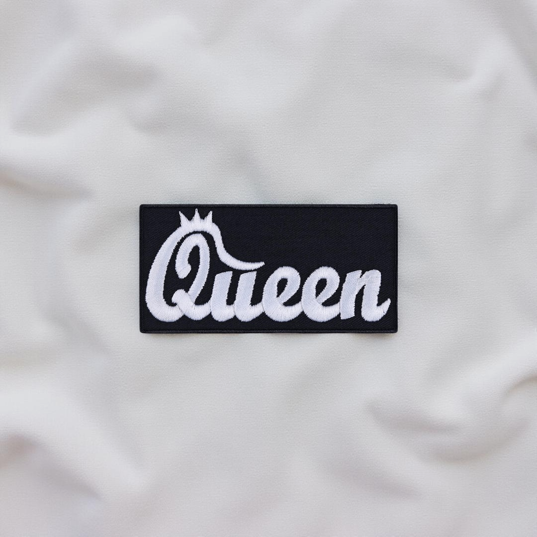 Queen Script White Embroidered Patch – Iron-On