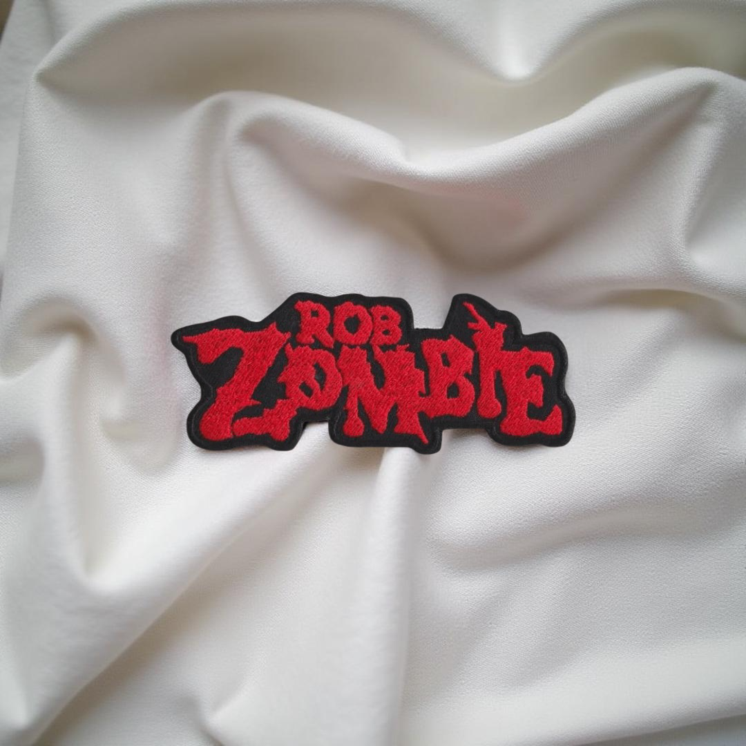 • Design: The patch features the words “ROB ZOMBIE” in a blood-drip style horror font with jagged outlines.