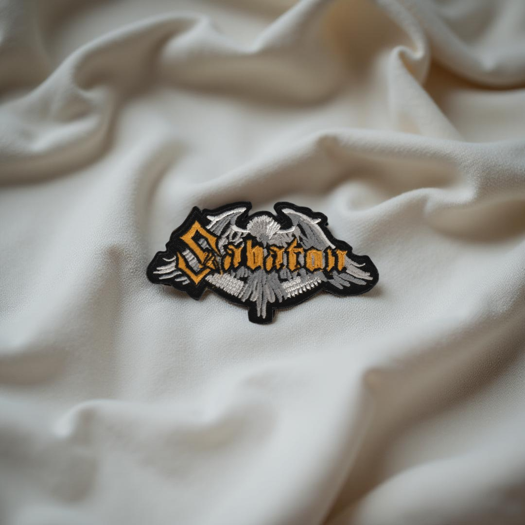Design: Gothic “Sabaton” text emblazoned across a soaring eagle