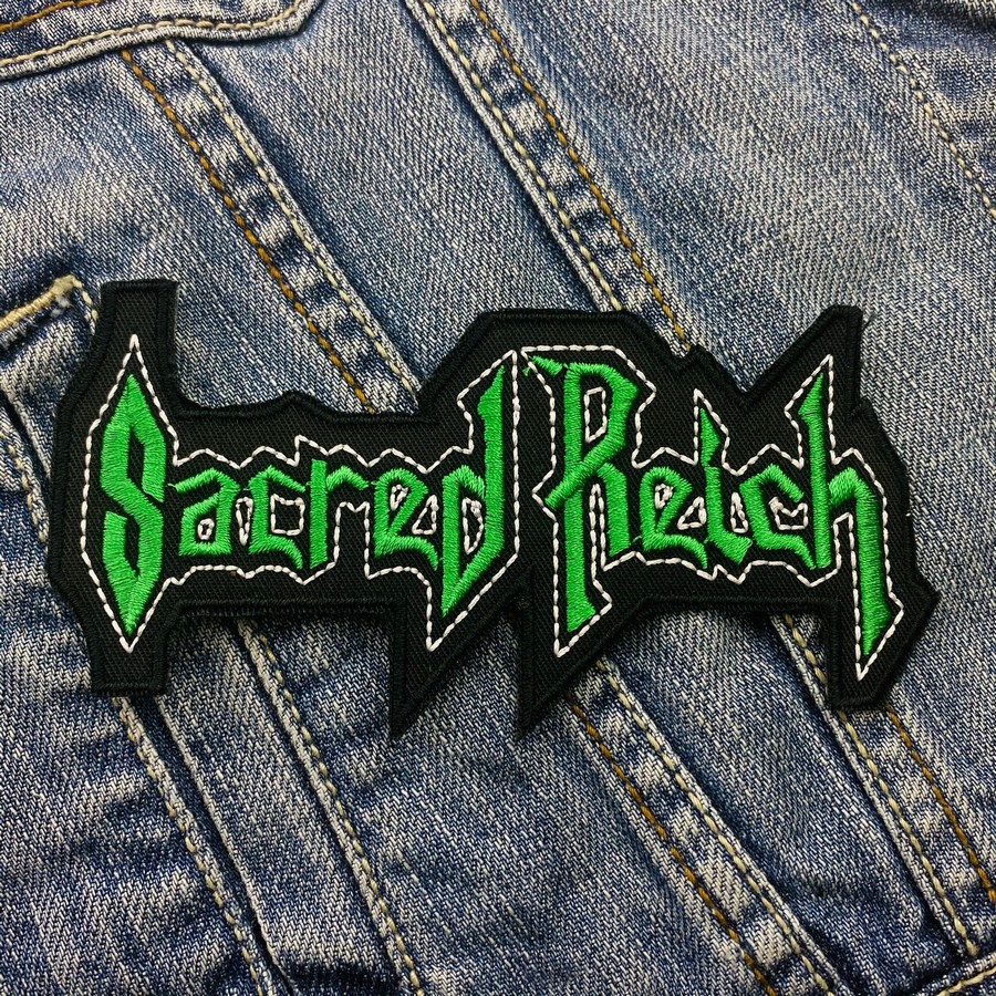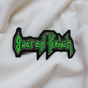 Design: Stylized Sacred Reich logo in jagged, angular font with layered detailing.
