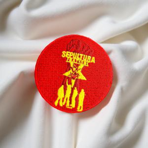 Design: Sepultura’s Nation album motif with stylized silhouettes and clenched fist emblem.