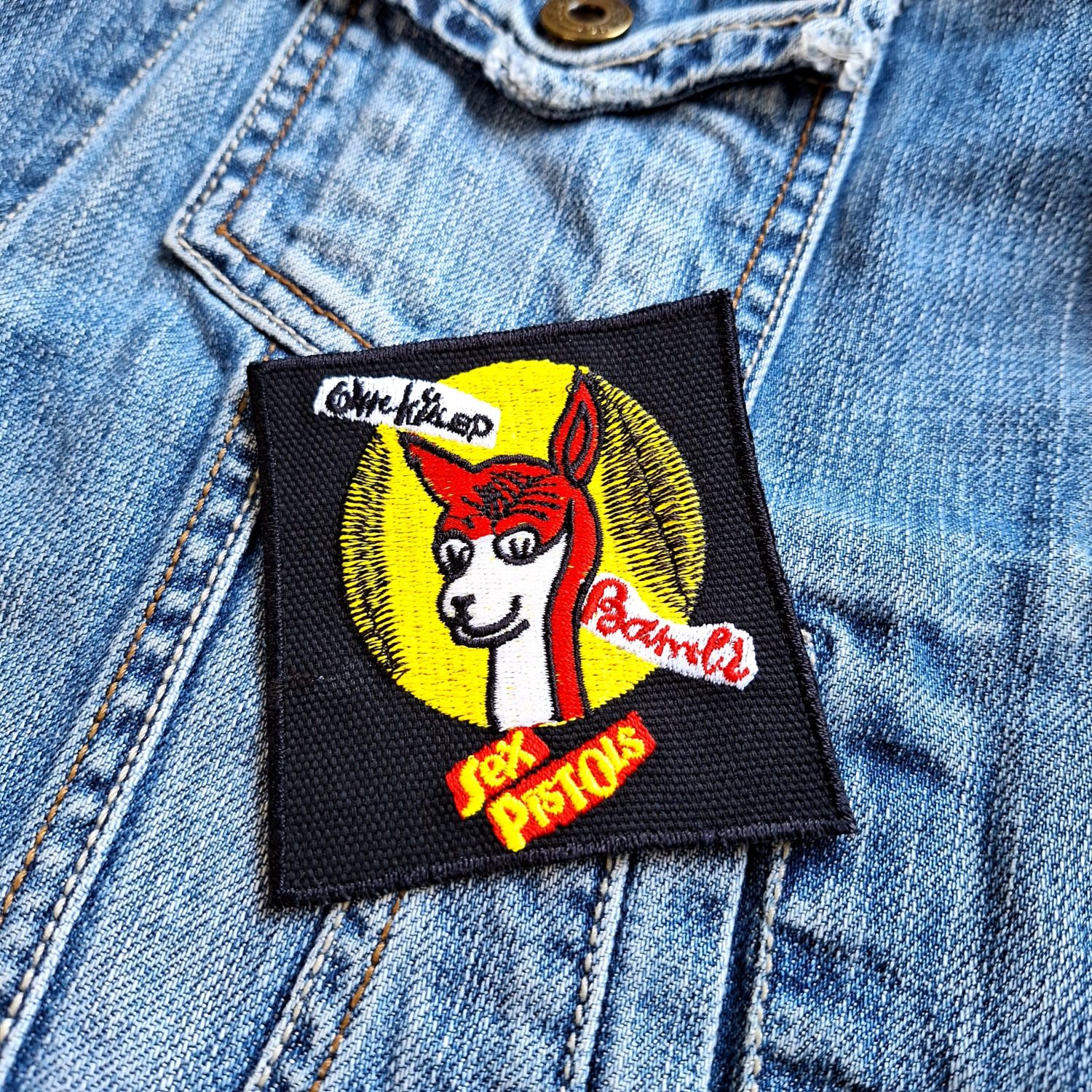 Design: A playful cartoon deer inspired by Bambi, with punk flair and the band name “Sex Pistols” integrated in a bold, colorful graphic.