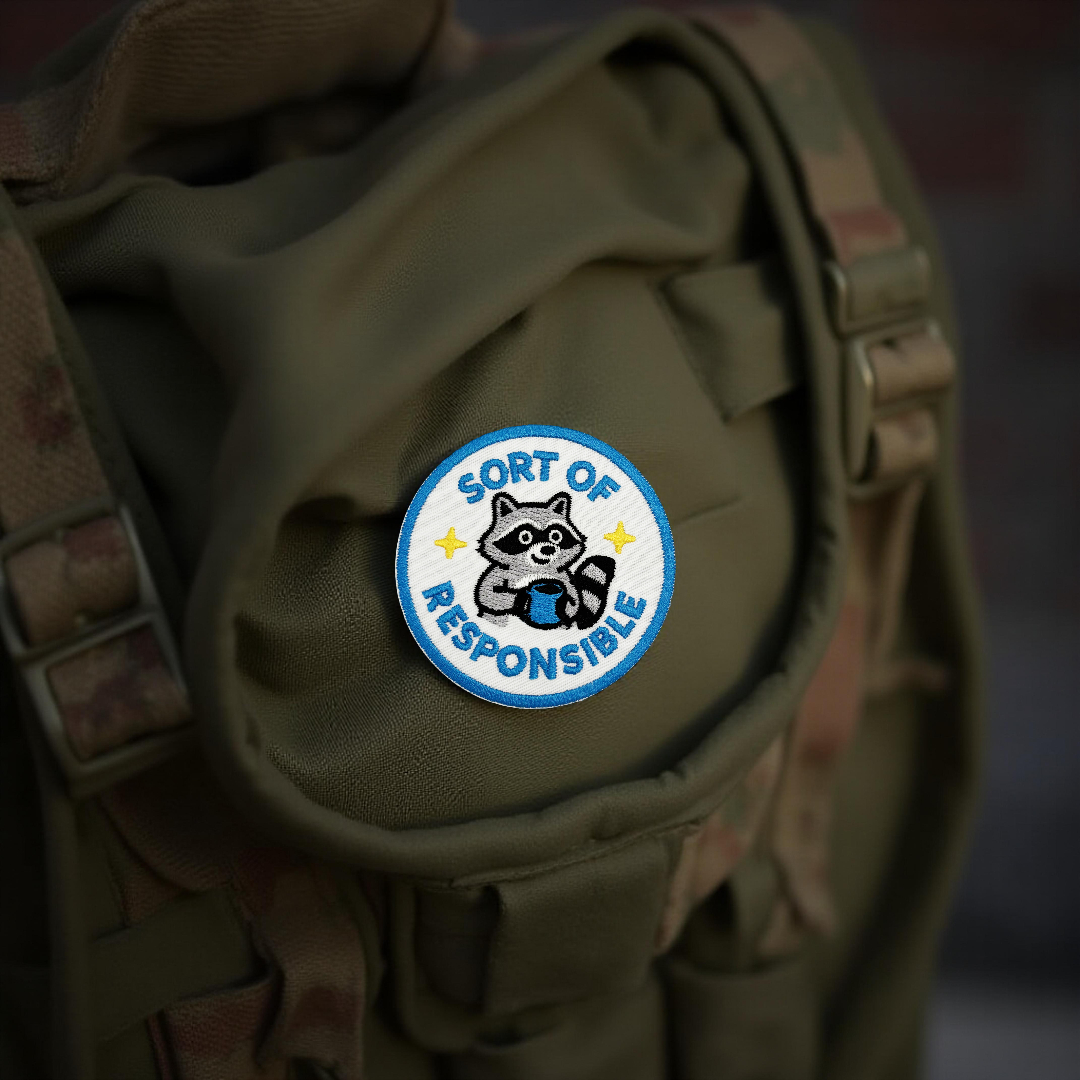 Sort of Responsible Raccoon Patch – 3″ Embroidered Hook & Loop Morale Patch