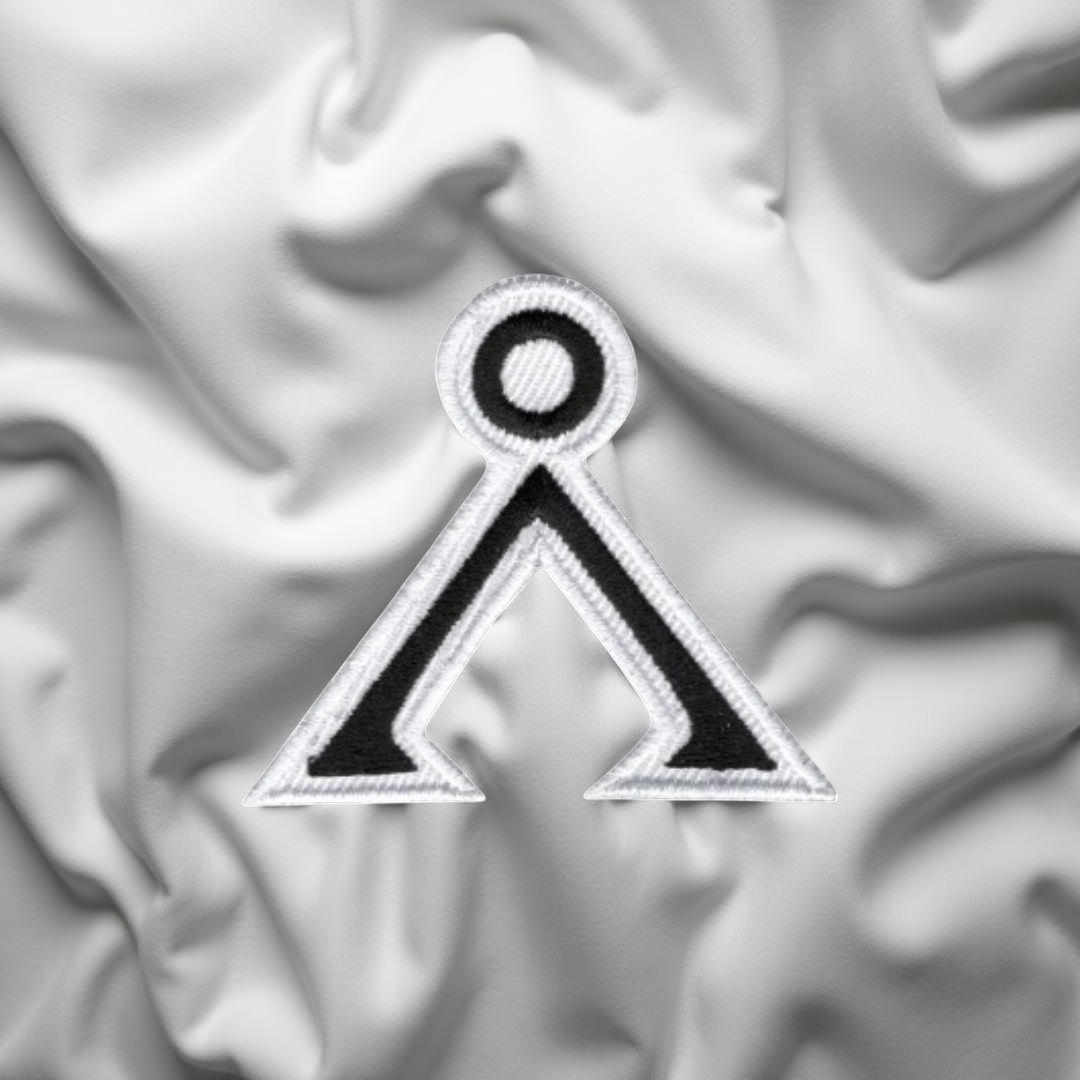 Colors of Design: Black symbol with a white border on a black and white patch