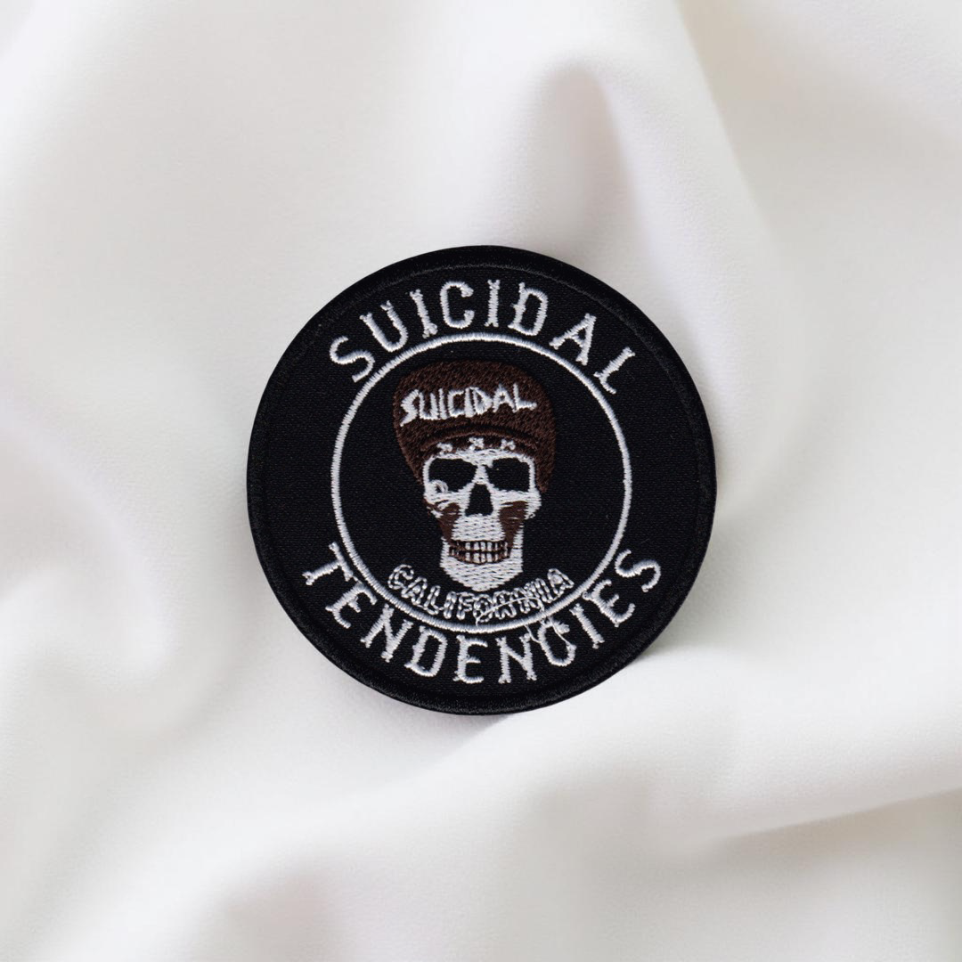 Design: Bold round patch showcasing a skull wearing a “Suicidal” hat with the text “Suicidal Tendencies” and “California.”