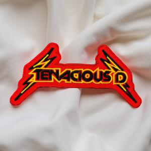 Design: “TENACIOUS D” in stylized lettering with jagged double lightning bolts extending from both ends.