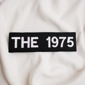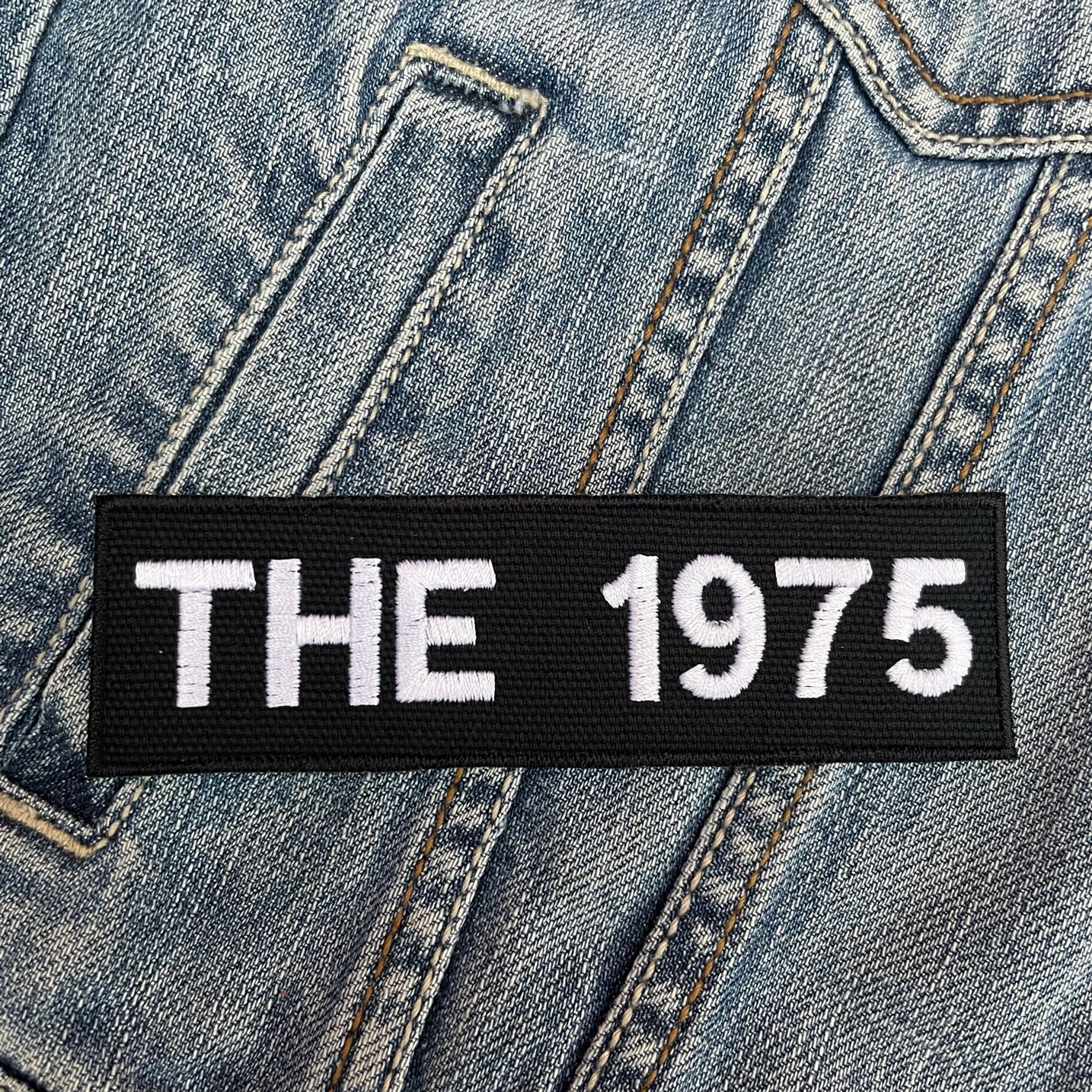 Design: “THE 1975” text in bold sans-serif font on a black strip background