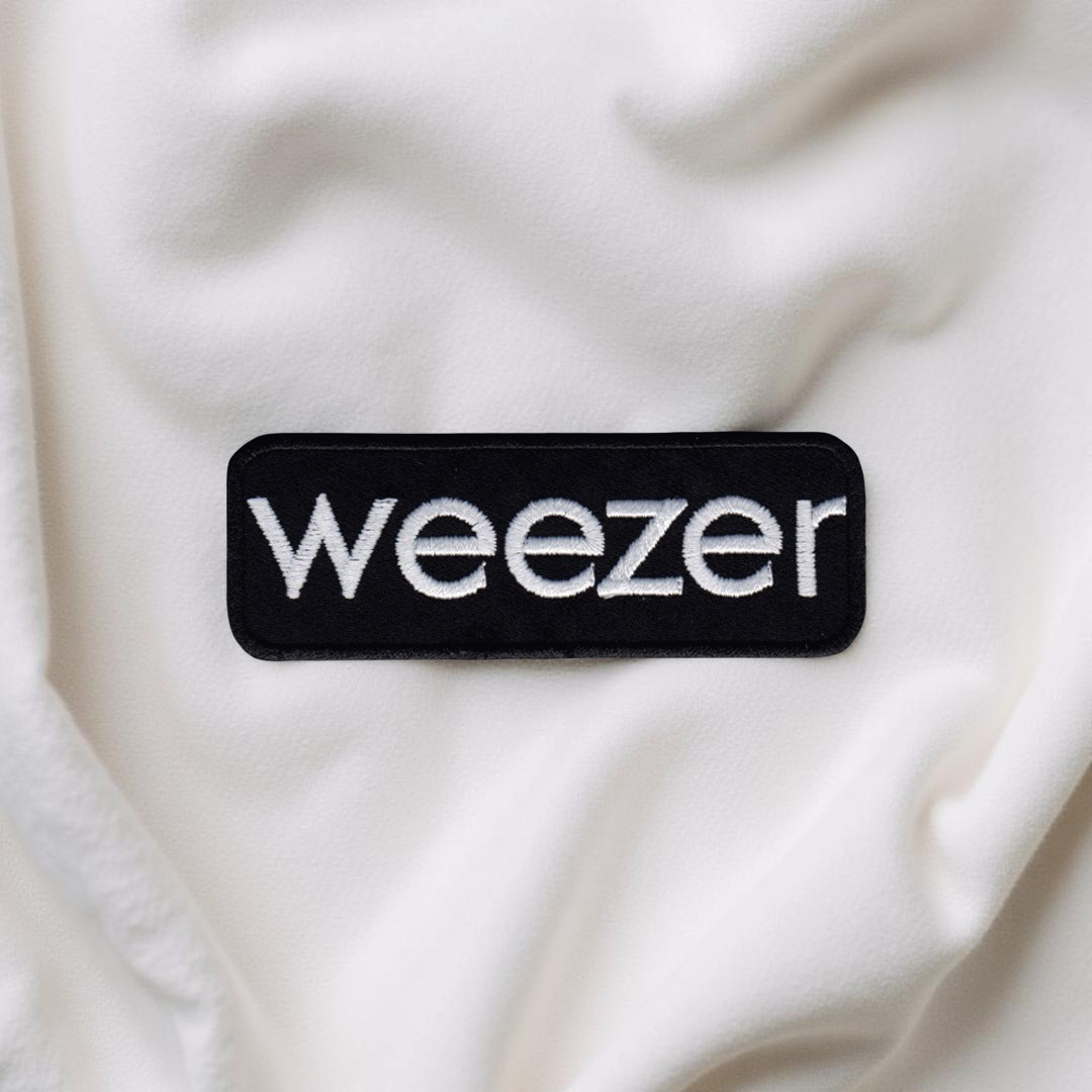 Design: Simple “weezer” band name in lowercase letters on a black background