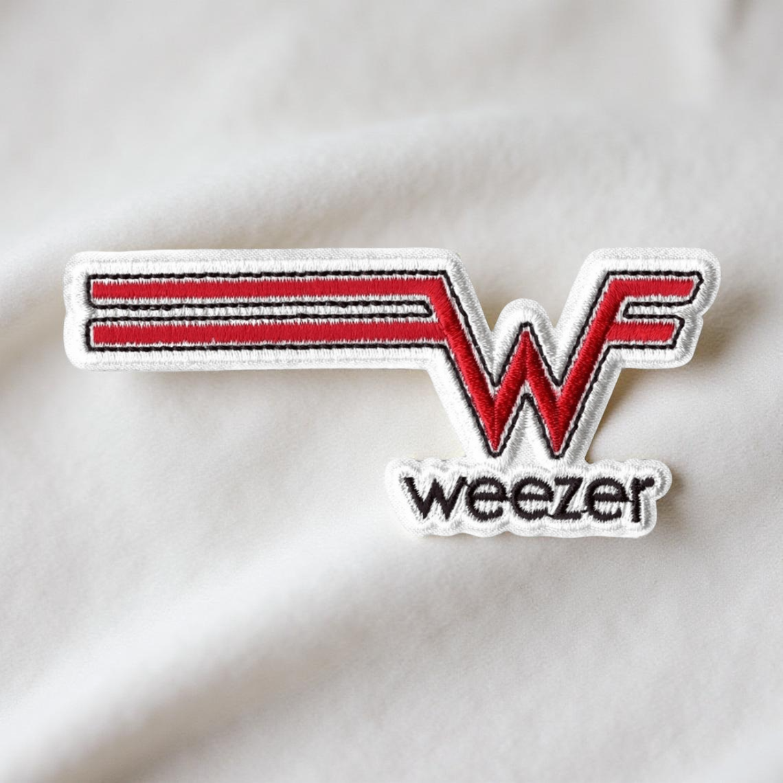 Design: Classic Weezer red “winged W” logo with “weezer” text below