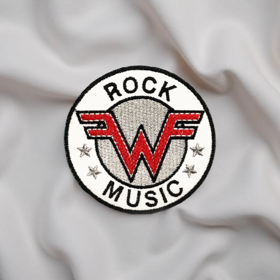 Design: Round patch with “Flying W” logo, “ROCK MUSIC” text, and stars