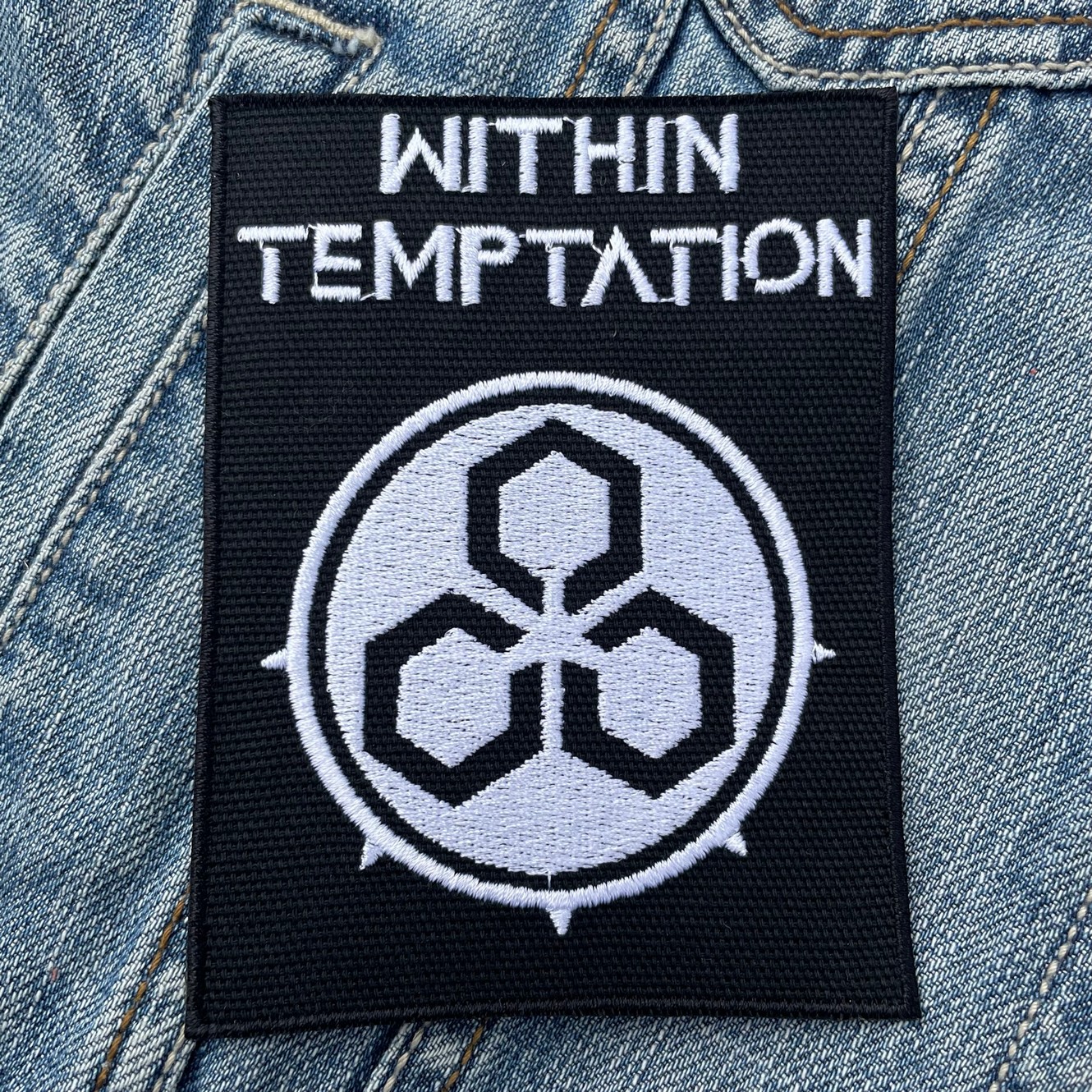 Design: Rectangular patch with white “Within Temptation” text and a large circular geometric emblem